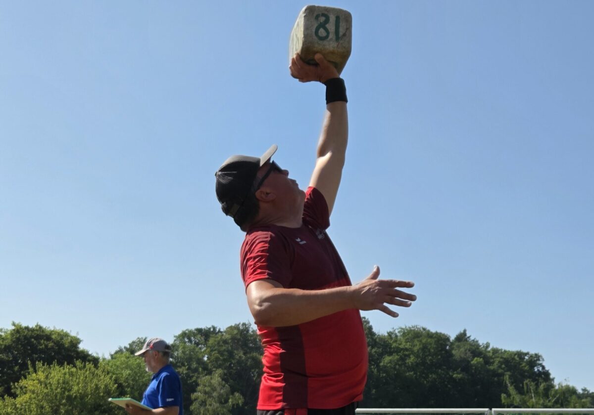 Im zweiten Wettkampfteil standen die Disziplinen Weitsprung, Steinstossen und Fachtest Allround an. Beim Weitsprung war mit Lina Nussbaumer nebst sechs Turner auch eine Turnerin am Start. Ihr Debüt gelang mit einer guten Weite und wurde mit einer guten Note belohnt. Der Fachtest Allround fand auf der Wiese statt, welche der Trockenheit geschuldet schon sehr hart war, was die Bälle in alle Richtungen und weit abprallen liess. Aufgrund dessen und der Turnfest-Nervosität konnten wir nicht an den guten Trainingsresultaten anknüpfen. Franz Mathis gab dieses Jahr beim Fachtest Allround sein Debüt. Beim Steinstossen wurde mit einem 12.5 Kg Stein versucht möglichst weit zu stossen.